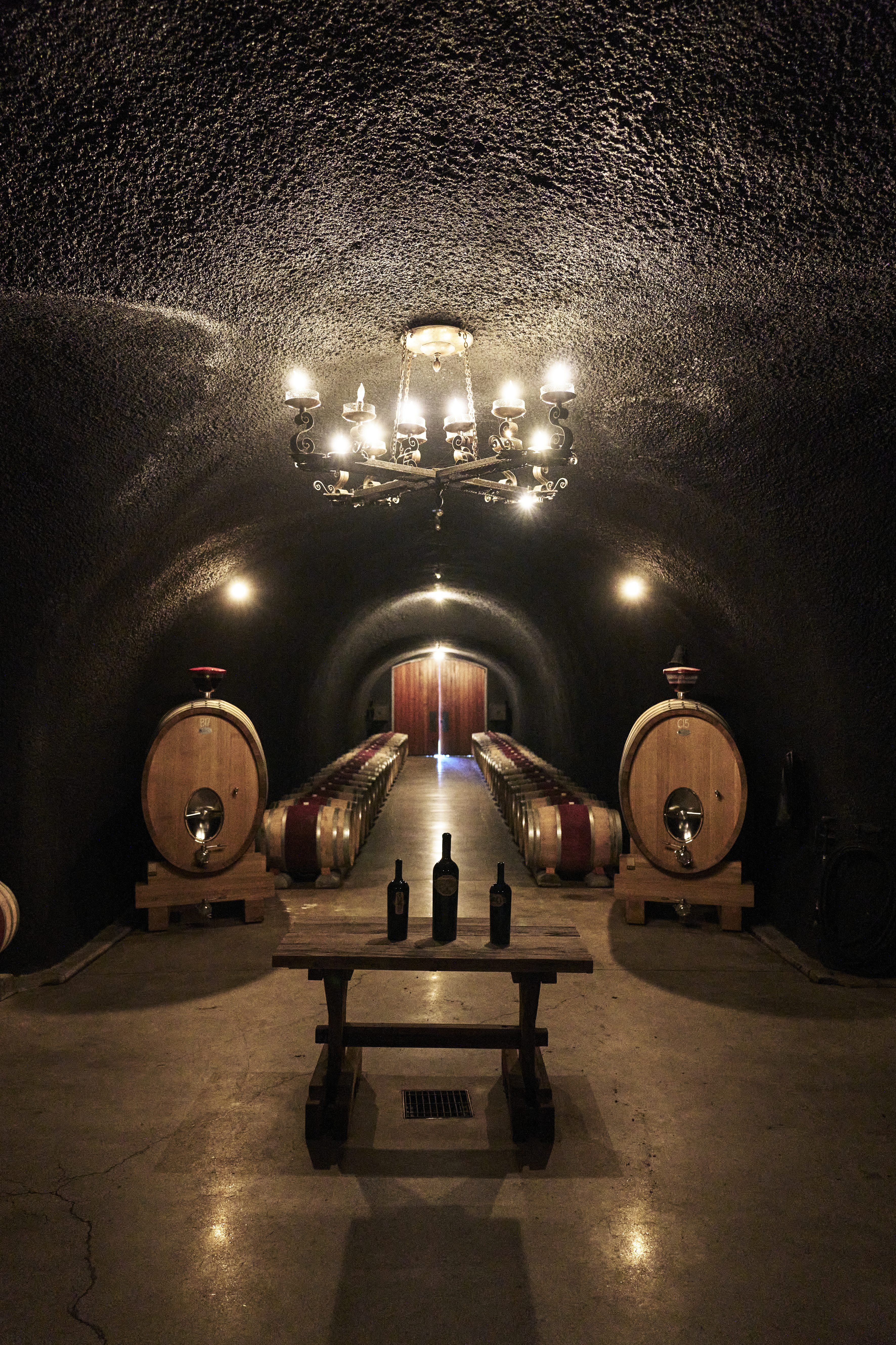 Soon after their purchase in early 2020, the Cathiards tore down the eyesore of an outdoor tank farm and have recently converted the space into a stunning waterfall feature. The historic stone winery was refitted entirely with small, upright, and inverted conical vats.
