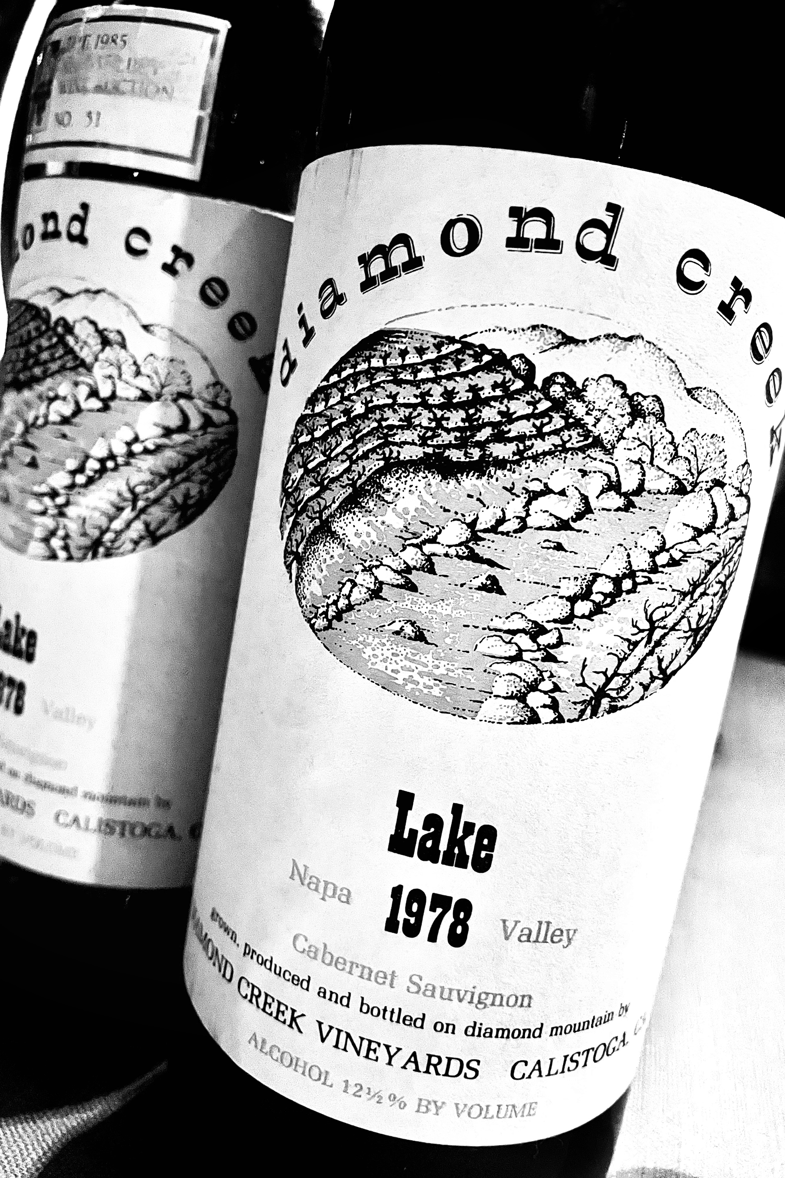 Diamond Creek was established on Diamond Mountain in Napa Valley by Albert (Al) and Adelle (Boots) Brounstein in 1967. At the time, it was just a vacant parcel of forest land on Diamond Mountain. Over the next few decades, it would be transformed into a stunning private park, their home, and one of Napa Valley’s most iconic vineyards and wineries. In 1968, Al planted around 20 acres of vines, almost entirely Cabernet Sauvignon. At altitudes between 400 and 800 feet, he isolated three general locations, each with different soil types, thus creating three vineyards within a vineyard. These were bottled annually as single vineyard wines, named for their soil types and positions: Gravelly Meadow (~5 acres), Red Rock Terrace (~7 acres), and Volcanic Hill (~8 acres). There was also a ¾ of an acre parcel on the opposite side of the estate’s lake from Gravelly Meadow. Al simply called this plot “Lake.” Lake is the coolest section and struggles to ripen in all but the warmest years, so Al usually blended it into Gravelly Meadow. However, in 1978, he decided that the fruit from Lake Vineyard was so good it should be bottled separately. Only 25 cases of the 1978 Lake were made, and its existence is largely a secret, except to unicorn hunters.